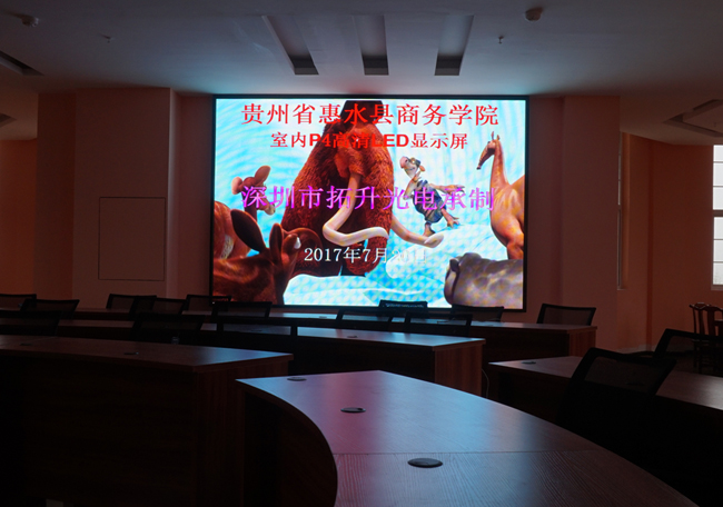 拓升光電承接財經(jīng)學(xué)院的P4室內(nèi)全彩LED顯示屏3塊屏幕,會議室第二塊屏已經(jīng)安裝完畢,第三塊屏還有陸續(xù)安裝中..........