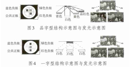 為了提高全彩LED顯示屏的水平視角及矯正顯示屏水平左右視差問題,表貼燈的封裝廠商還采用了“一”字形芯片排列工藝以替代早期的“品”字形排列。