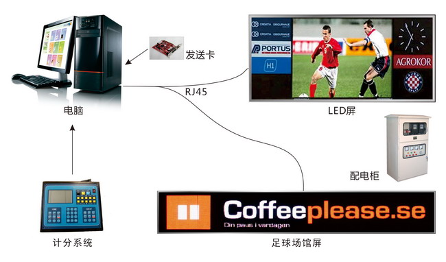 3、連接裁判系統(tǒng)、計時計分系統(tǒng),LED顯示屏可以實時播放比賽時間和比分。